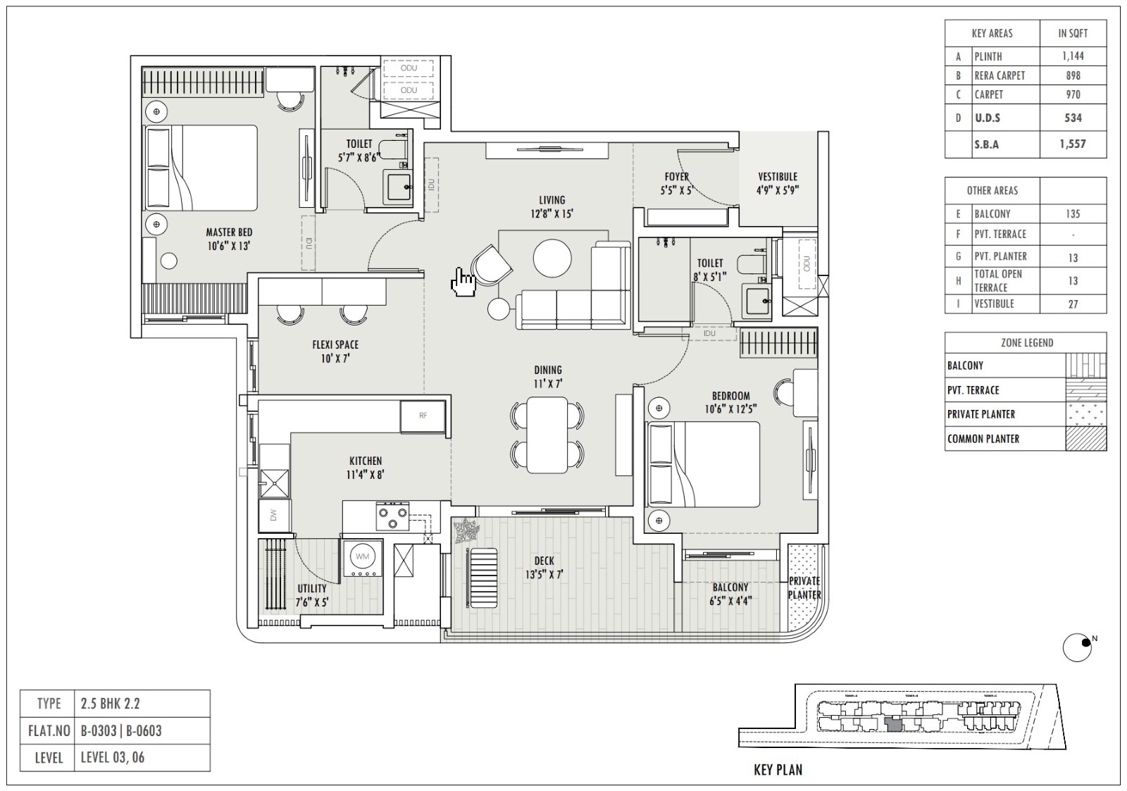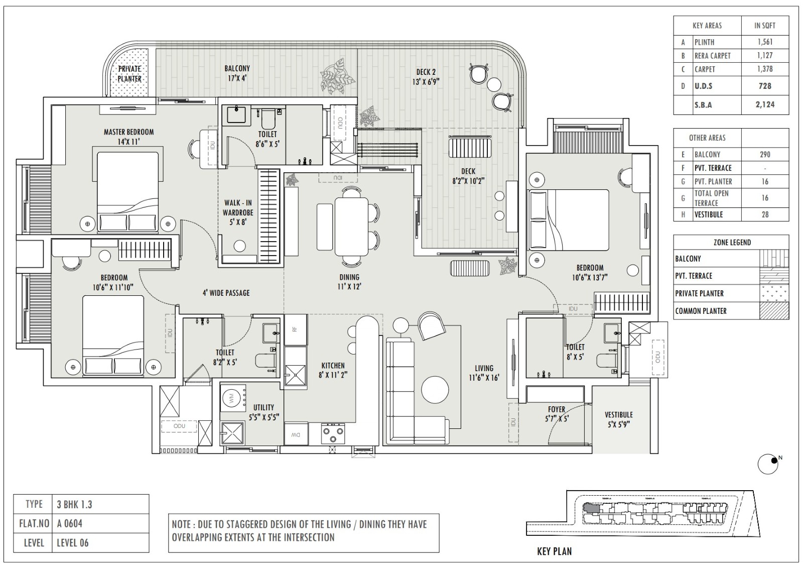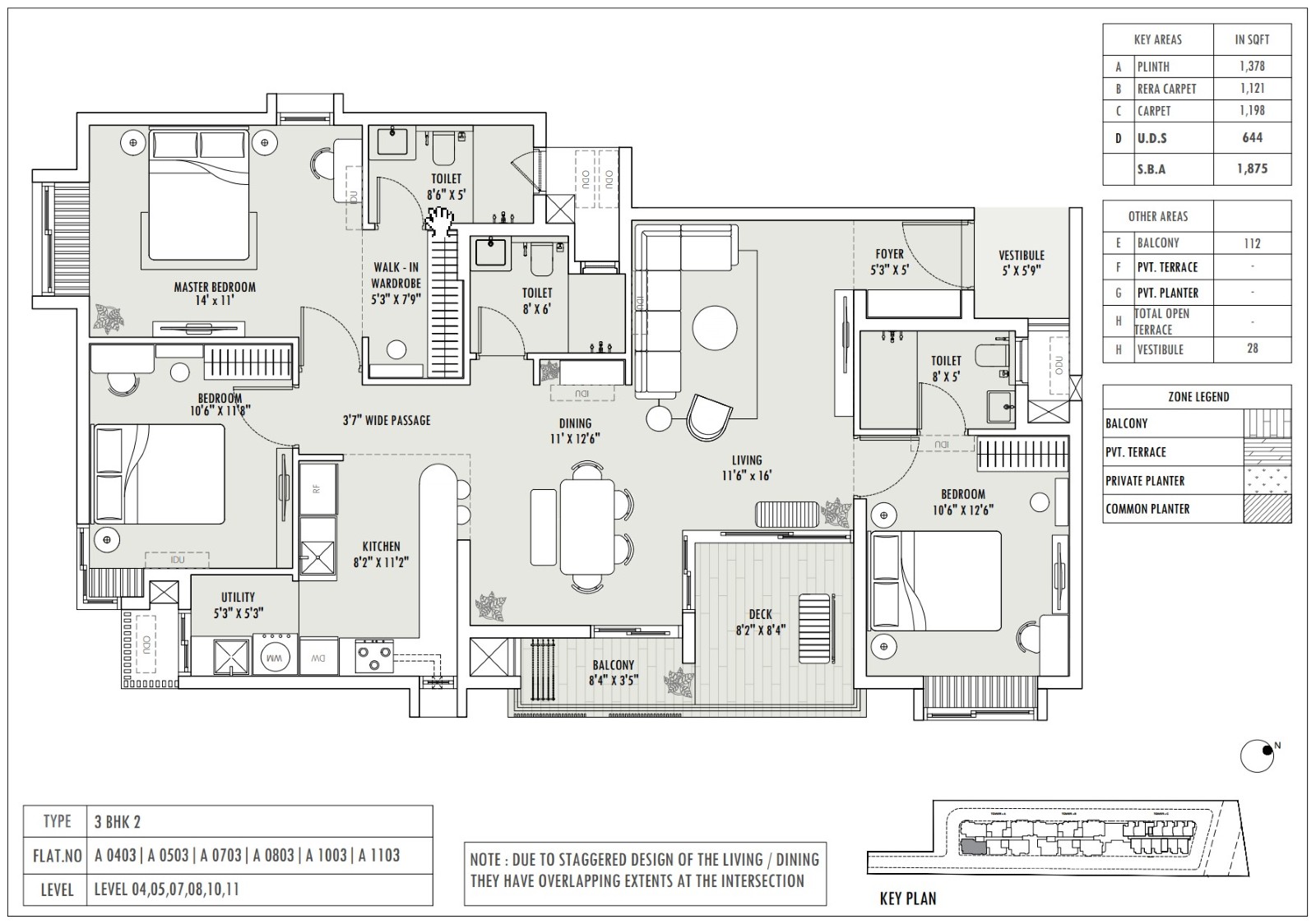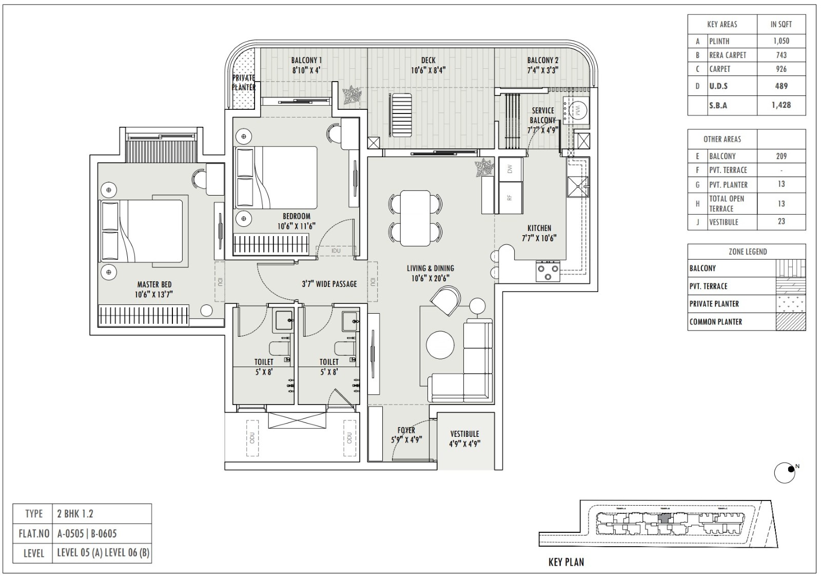 Homes are designed for Sunlight, Cross-Ventilation & Green Views with efficient layouts, Large Bay Windows and Green Balconies; 3BHK & 4BHK Sky-Villa Style Penthouses are also planned.