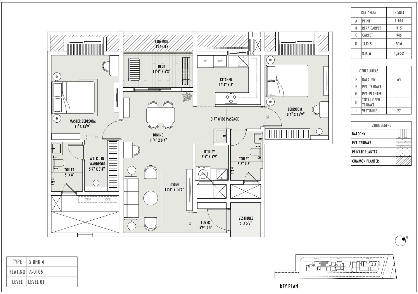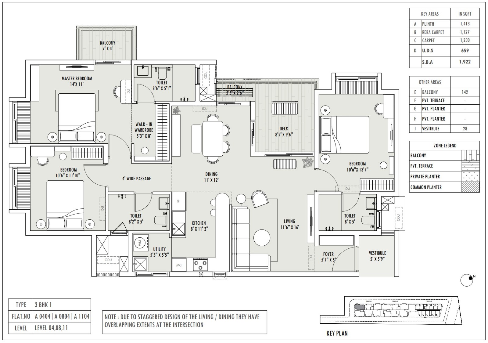 Crown-level residences that blend villa-scale comfort with skyline views, these 4BHK penthouses feature an expansive living–dining suite that flows to a private terrace/sky deck, four ensuite bedrooms including a grand master with walk-in wardrobe, and a calm family lounge for everyday downtime. Wide glazing invites abundant daylight and long vistas, while a tucked-away utility and provision for a staff/servant room (as per plan) keep the home effortlessly organized-ideal for refined entertaining and multi-generation living.